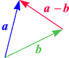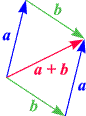 genauer an: a (blau) und b (grün) haben unterschiedliche Beträge. Die aus ihnen durch Normierung gewonnenen Einheitsvektoren (rot) haben aber beide den Betrag 1. Sie definieren ein gleichseitiges Parallelogramm (eine Raute), deren Diagonale (aus Gründen der Symmetrie) den Winkel zwischen a und b halbiert, und in deren Richtung die Summe (30) zeigt. Natürlich zeigt auch jedes (nichttriviale) Vielfache von (30) in dieselbe Richtung.