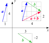 • Die komplexen Zahlen (ein formales Zahlensystem, innerhalb dessen es möglich ist, die Wurzeln aus negativen Zahlen zu ziehen) können als zweikomponentige Vektoren dargestellt werden.