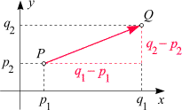 so ist der Verbindungsvektor von P nach Q durch