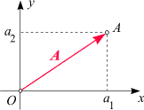 3. Als Ortsvektor: Da die Lage eines Punktes in der Zeichenebene durch ein Zahlenpaar (seine Koordinaten) bestimmt ist, und da ein zweikomponentiger Vektor ebenfalls ein Zahlenpaar ist, können wir Komponenten mit Koordinaten und daher Vektoren mit Punkten identifizieren: Dem Punkt A(a1, a2) entspricht der Vektor A = (a1, a2) und umgekehrt. Vektoren in dieser Eigenschaft heißen Ortsvektoren (da sie einen Ort angeben). Im Gegensatz dazu wird ein Verbindungsvektor (ein bisschen schlampig) auch Richtungsvektor genannt (da seine Hauptaufgabe oft darin besteht, eine Richtung anzugeben, aber keinen Ort).