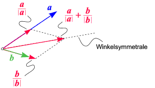 berechnen. Dieser Vektor zeigt genau in die Richtung der von a und b definierten Winkelsymmetrale (Winkelhalbierende). Sehen Sie sich das anhand dieser Skizze