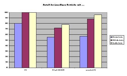 Angesichts dieser positiven Effekte hat die Bedeutung computergestützter und multimedialer Aus- und Weiterbildung im betrieblichen Rahmen, sowohl in der "klassischen" und lokal begrenzten Form des Computer Based Trainings ("CBT", Lernprogramme auf CD-ROM) als auch in der vernetzten und interaktiven Form des Telelernens, deutlich zugenommen. Vor allem durch die rapide gestiegene Verbreitung des PC am Arbeitsplatz und die voranschreitende Vernetzung der Unternehmen nach innen und außen werden die infrastrukturellen Voraussetzungen für computergestützte Qualifizierungsmaßnahmen ständig verbessert. Daher werden computergestützte und multimediale Lernapplikation eine weiter wachsende Rolle im Rahmen der betrieblichen Weiterbildung spielen. Diese Tendenzen gelten aber in erster Linie für Großunternehmen.