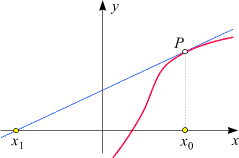 der gesuchten Nullstelle weiter entfernt liegen als x0.
