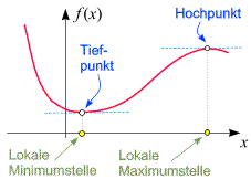 lokalen Maximumstelle (Minimumstelle). Die gemeinsame Bezeichnung ist lokale Extremstelle.