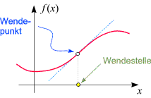 in dem die Ableitung nur an der Stelle x
